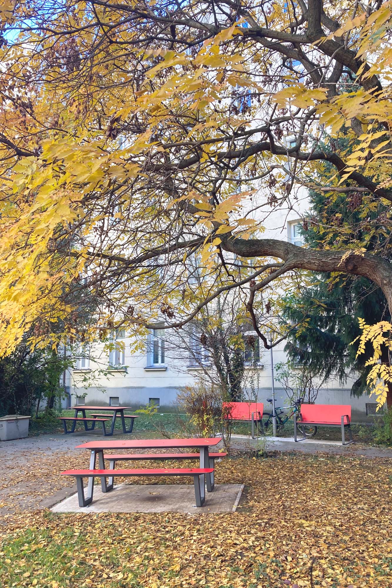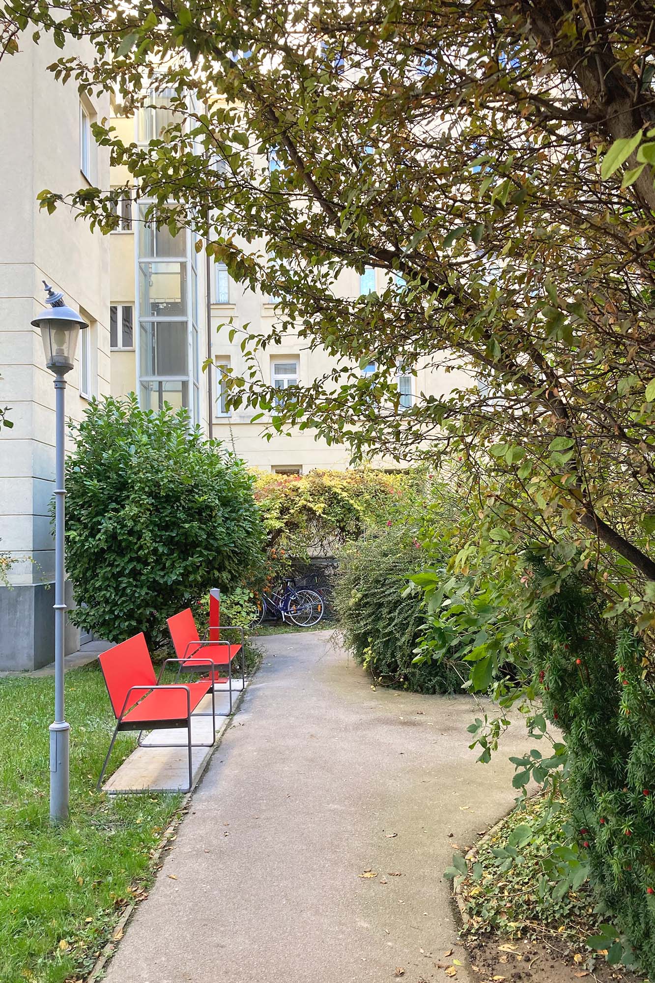Neben den Wohnräumen wurden auch die Stiegenhäuser, die Außenanlagen sowie der im Innenhof situierte Spielplatz instandbesetzt und gestalterisch aufgewertet.