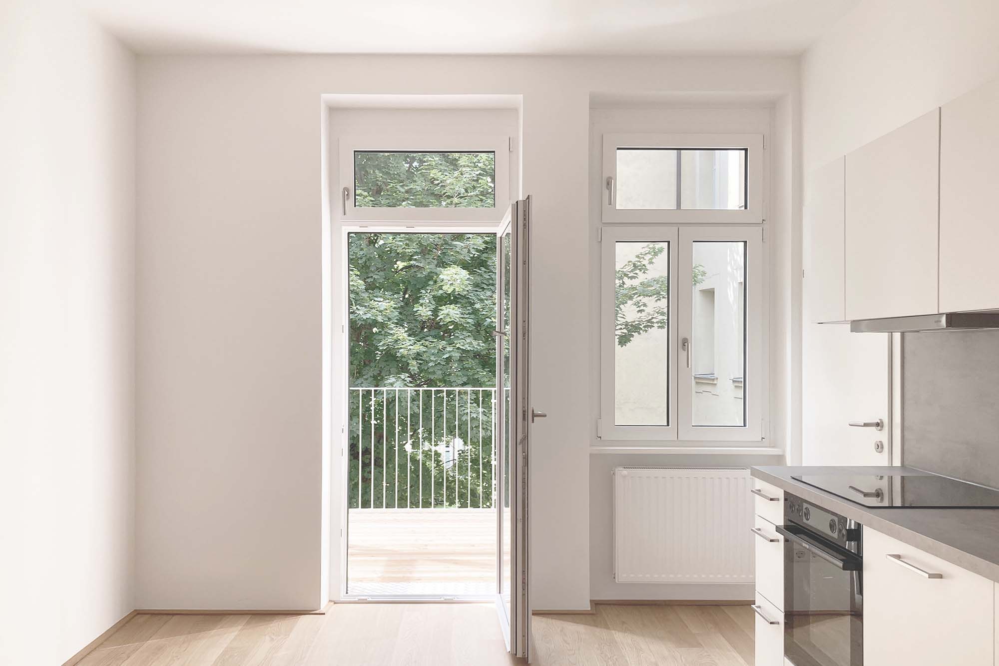 Der Wohnkomfort wurde durch die Neuerrichtung von Balkonen weiter verstärkt, die eine Verbindung zum begrünten Innenhof schaffen und somit den Bewohner:inenn zusätzliche Aufenthaltsqualität bieten.